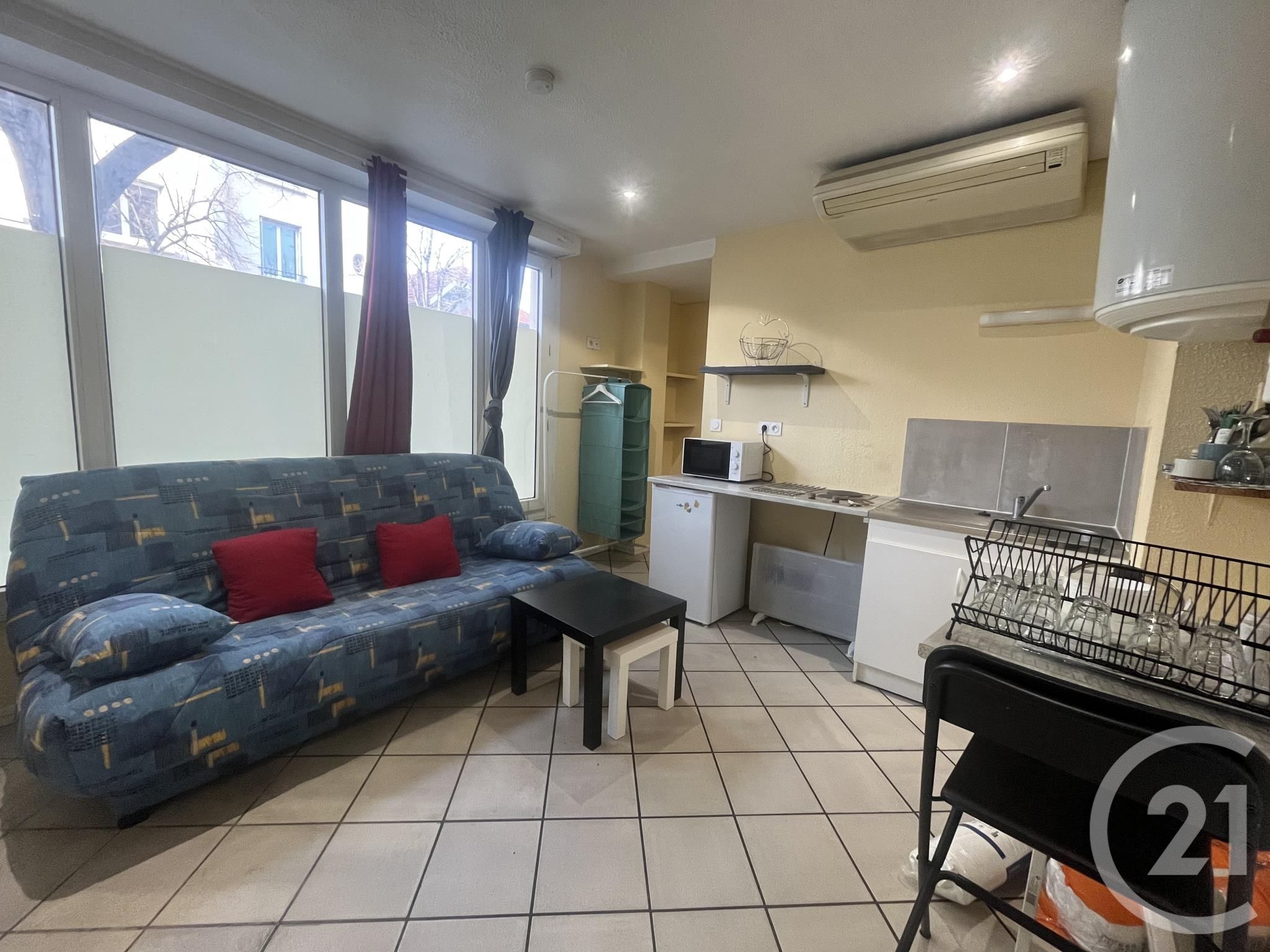 Studio entièrement meublé situé au rez-de-chaussée comprenant une pièce de vie avec un coin kitchenette et une salle d'eau avec wc.